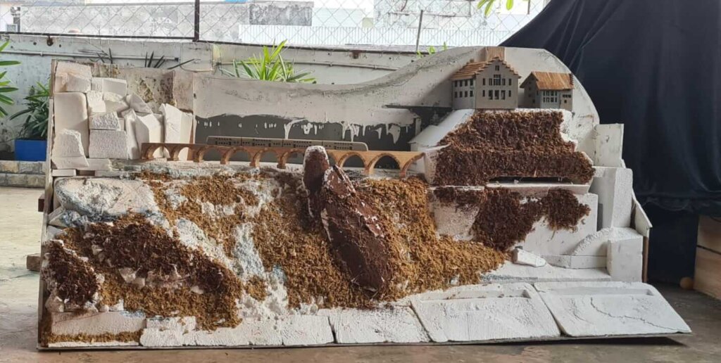 Seated approximately 6 feet away from the diorama during its creation, I immersed myself in the real world of my artistic creation. This intentional distance allowed me to perceive the diorama with the same awe and wonder I experienced when standing before the Rhine Falls. Each ripple, every facet of the landscape, and the thundering sound of cascading water were recreated with meticulous precision, offering not just a visual spectacle but a tangible journey into the heart of nature’s grandeur.